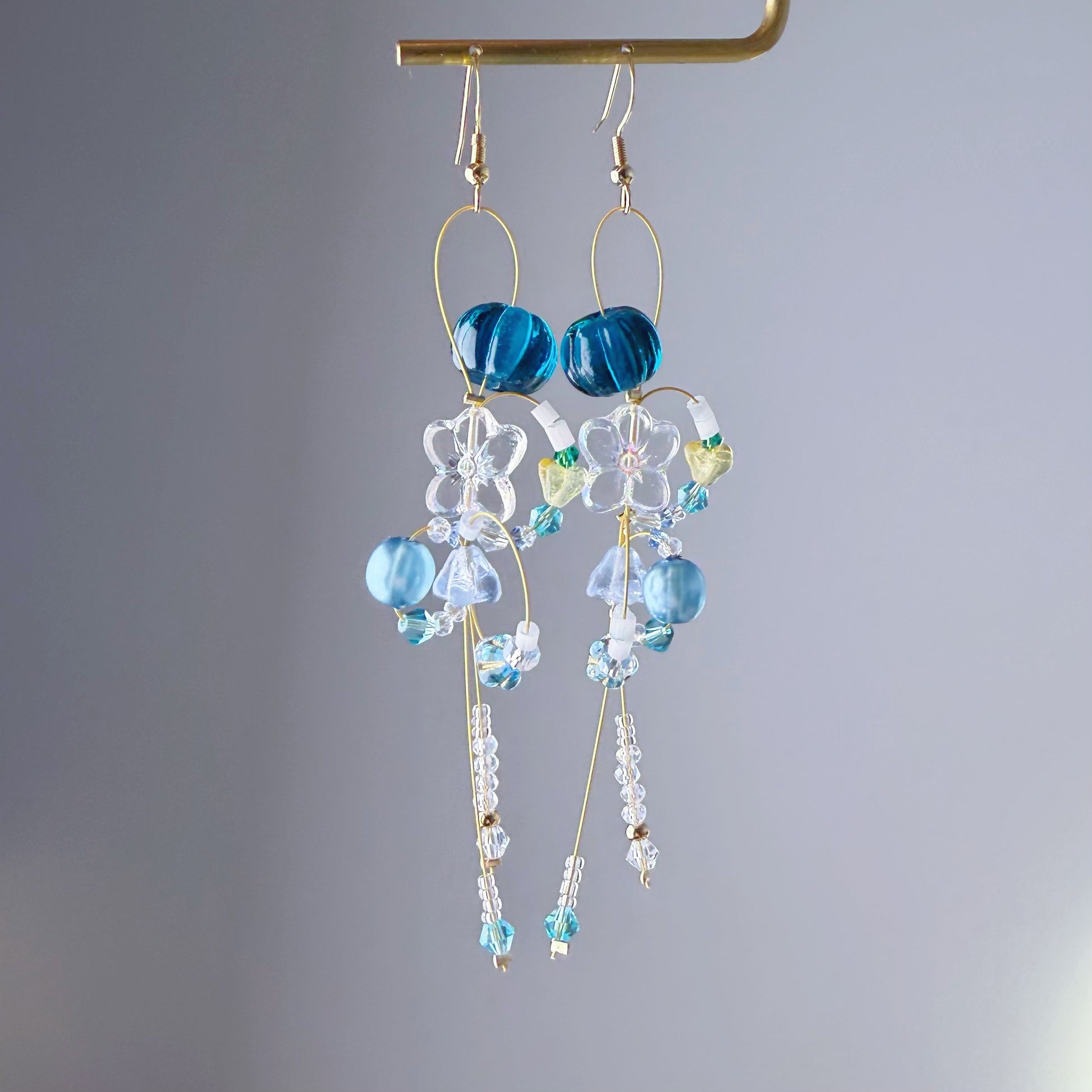 Note: The Blue Flowers Glass Beads Drop Earrings are handmade locally in the UK. Due to the handmade nature, the shape and colour of flowers could vary slightly from the sample.