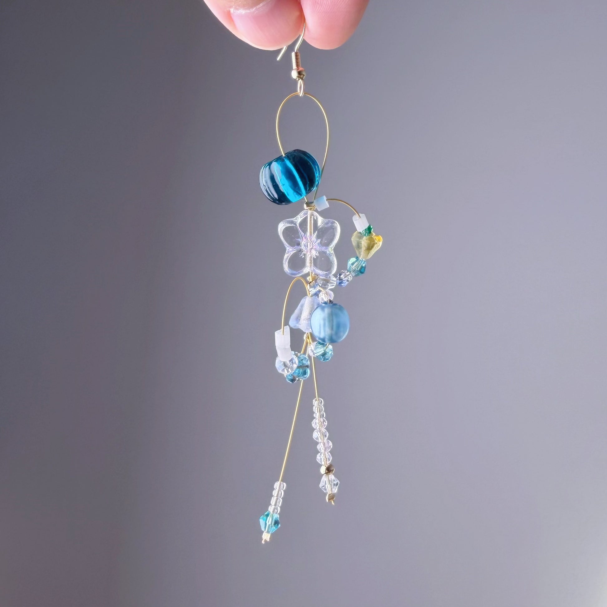 Capture the charm of a summer garden with these Handmade Blue Flowers Glass Beads Drop Earrings. Crafted with delicate Czech glass beads, each earring reflects the soft beauty of blooming flowers, bringing a fresh and elegant touch to any outfit. Perfect as a thoughtful gift, these earrings add a splash of nature-inspired colour and sparkle to your day.