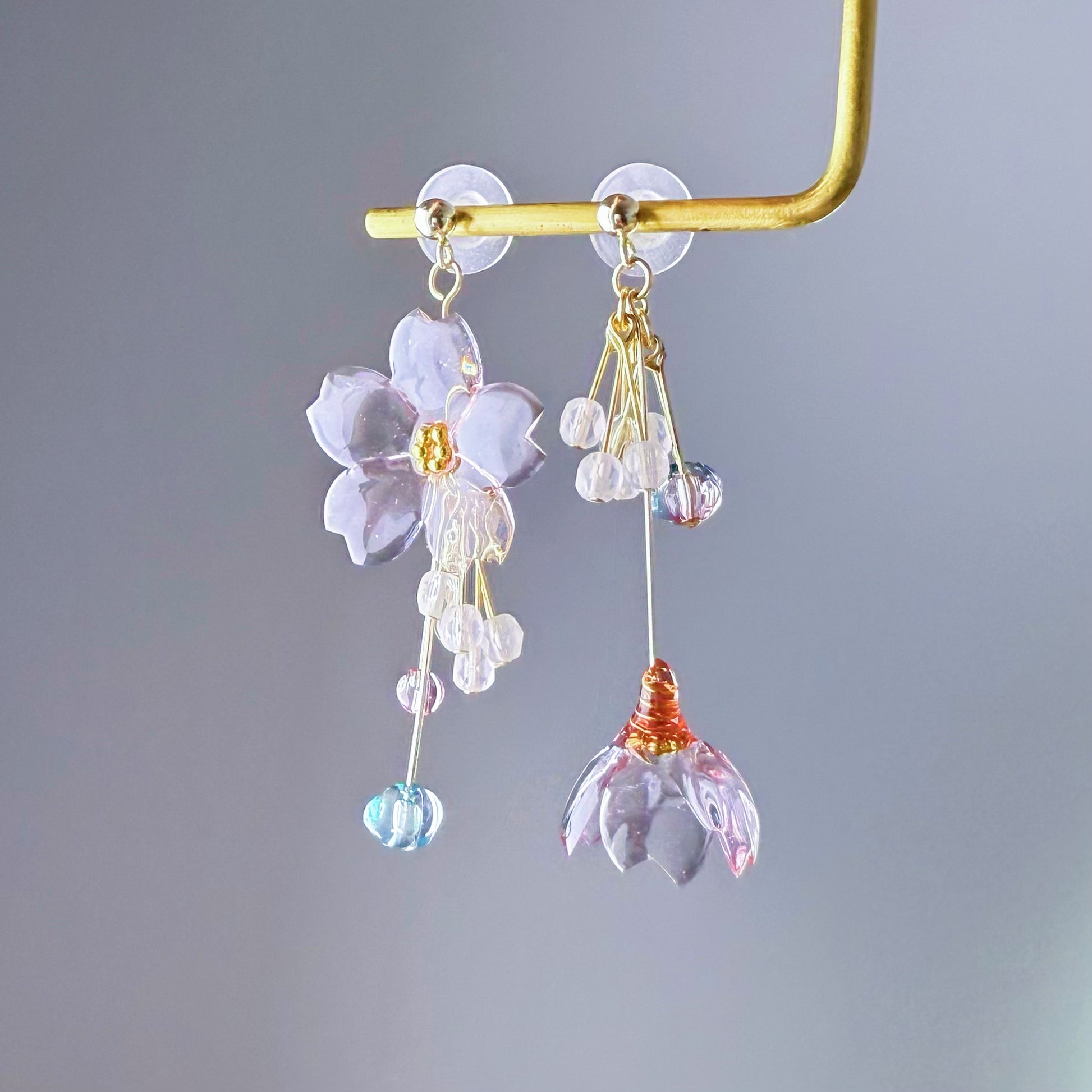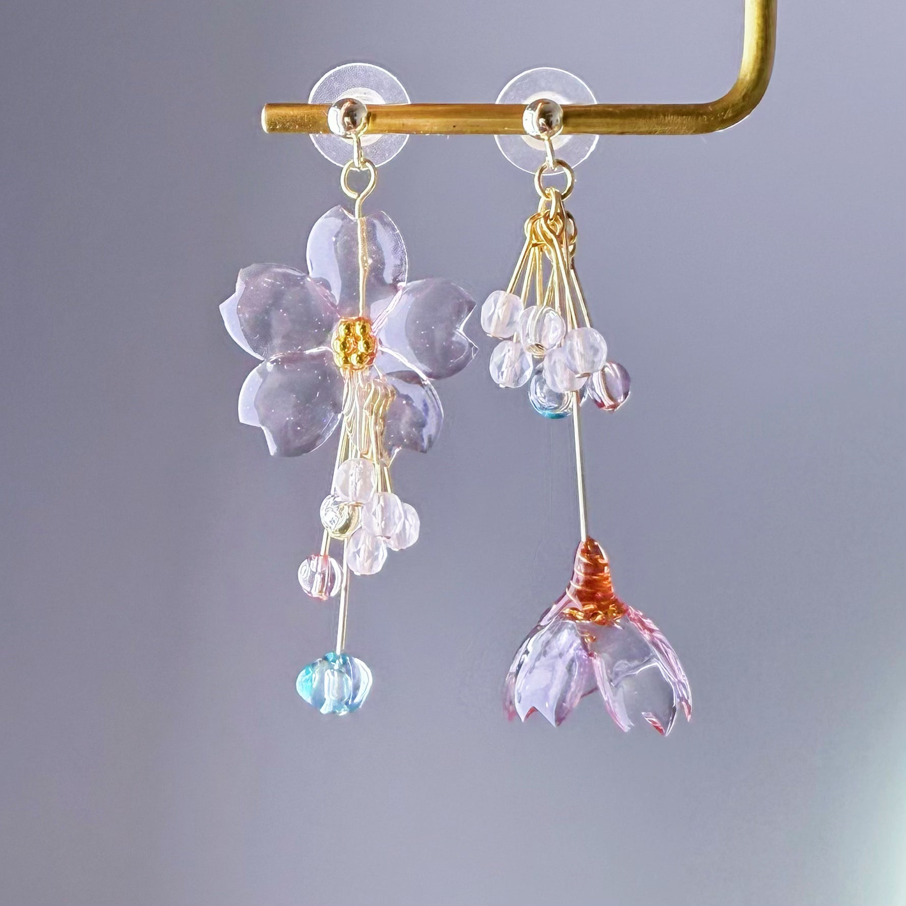 Note: The Clear Ice Pink Sakura Cherry Blossom Flowers Earrings are handmade locally in the UK, each pieces would vary slightly in detail.