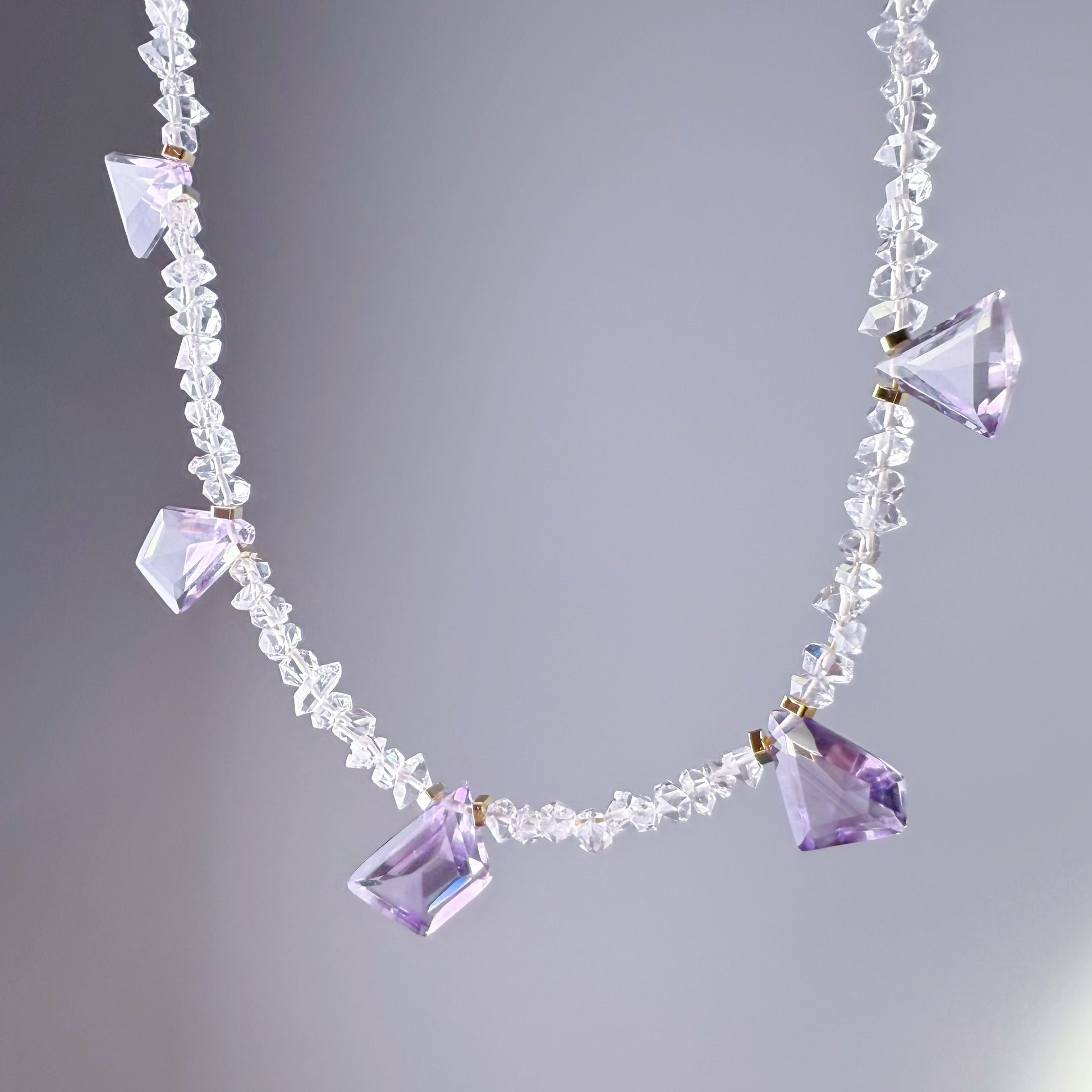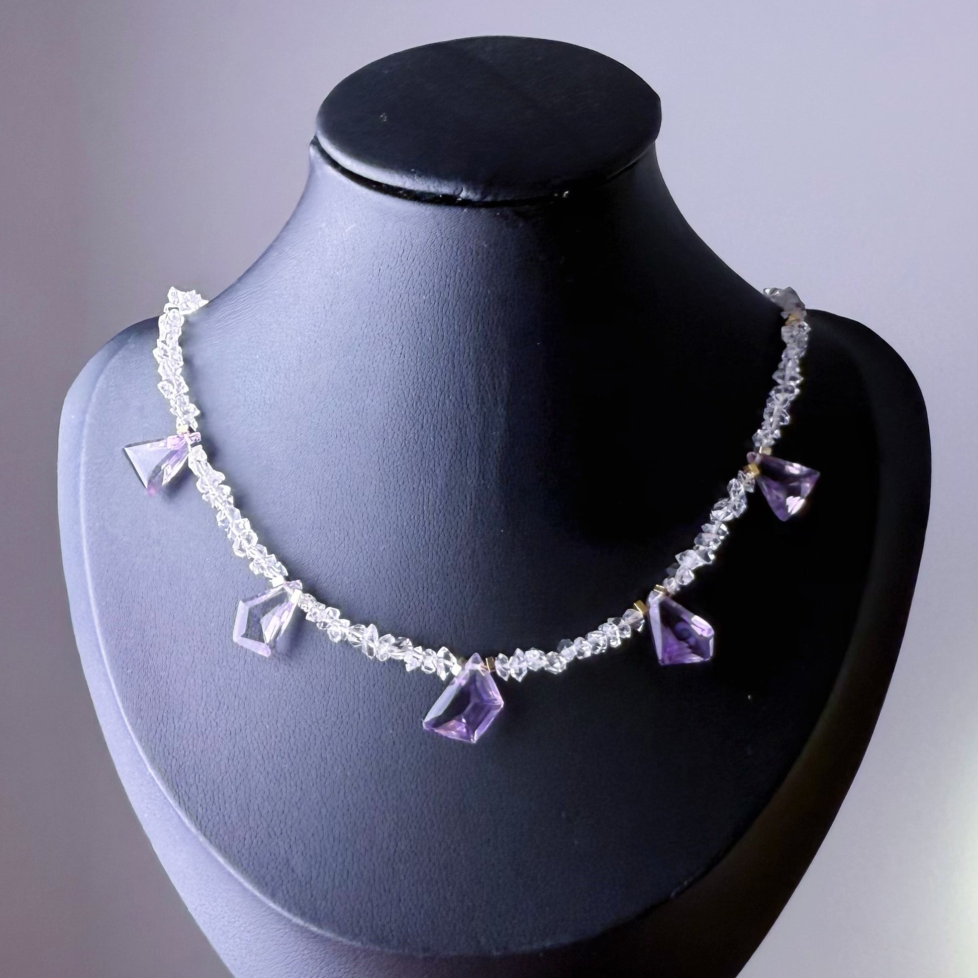 Size of Herkimer Diamond beads: around 3-4mm, Size of Amethyst: around 5mmx8mm; Length of necklace: adjustable from 30cm to 35cm (contact for custom length)