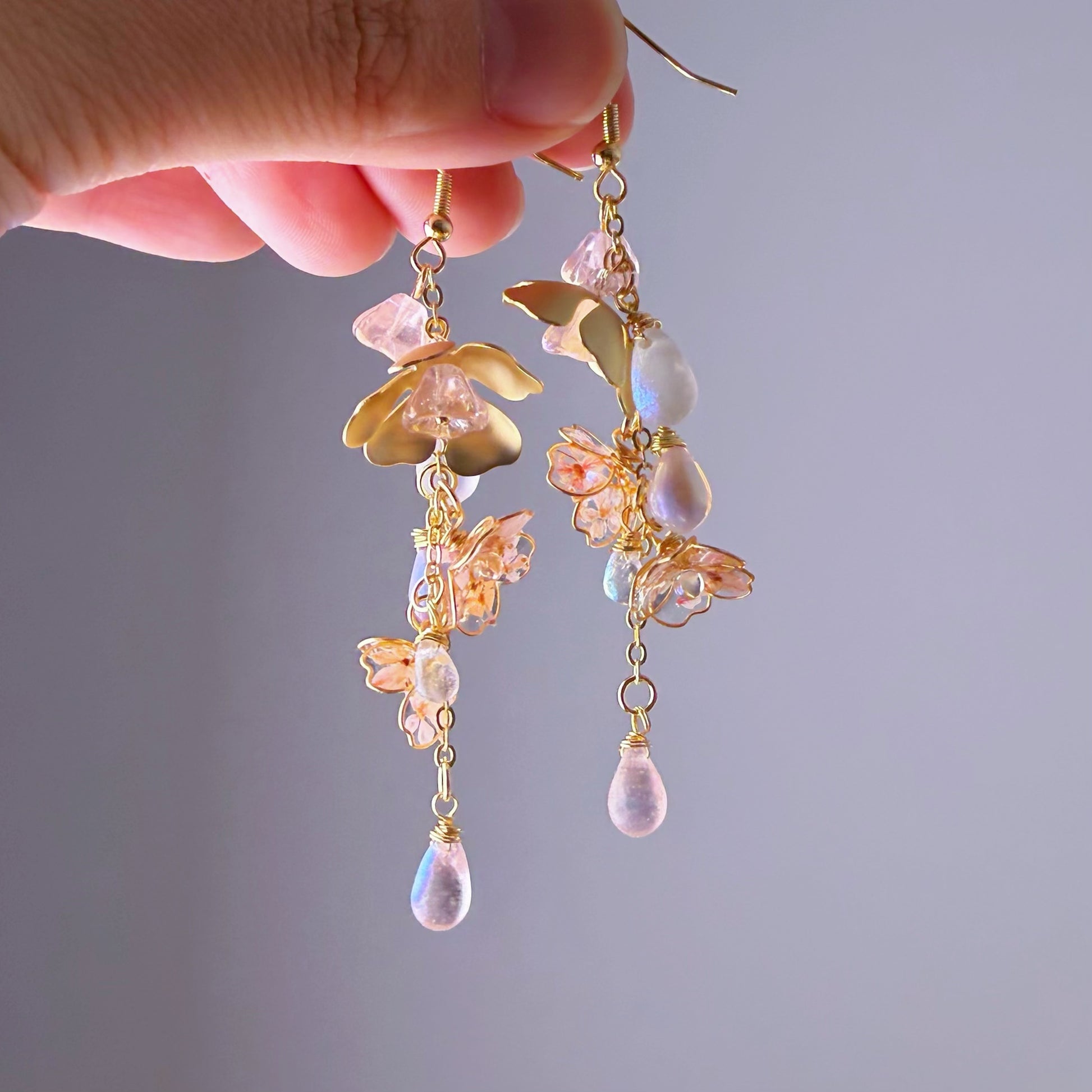 Note: The Pink Cherry Blossom Flowers in Rain Earrings are handmade locally in the UK, each pieces would vary slightly in detail.