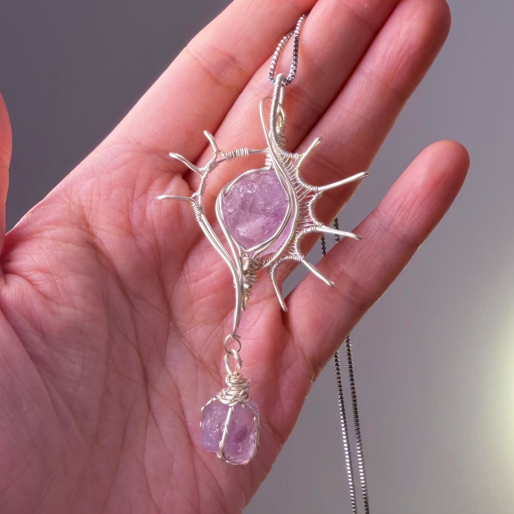 Note: the Natural Amethyst Conch Shape Wire Wrapped Necklace is handmade locally in the UK. The pendant is made with natural crystal, which could have tiny cracks, clouds, and tiny black spots, which is part of the beauty of nature!