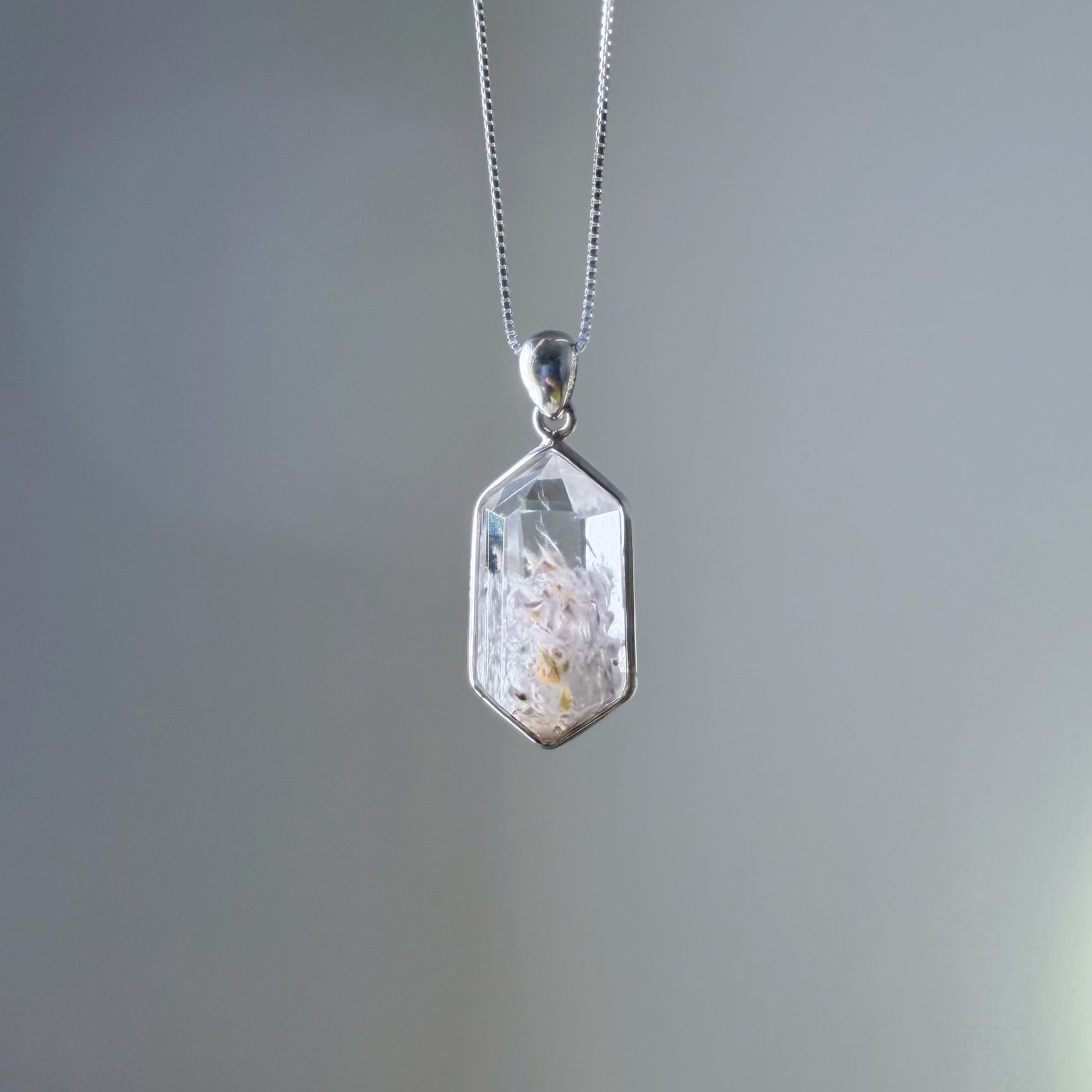 Note: the Natural Cream Rutile Quartz Crystal Necklace is handmade locally in the UK. The necklace is made with natural crystal, which could have tiny cracks, clouds, and tiny black spots, which is part of the beauty of nature!