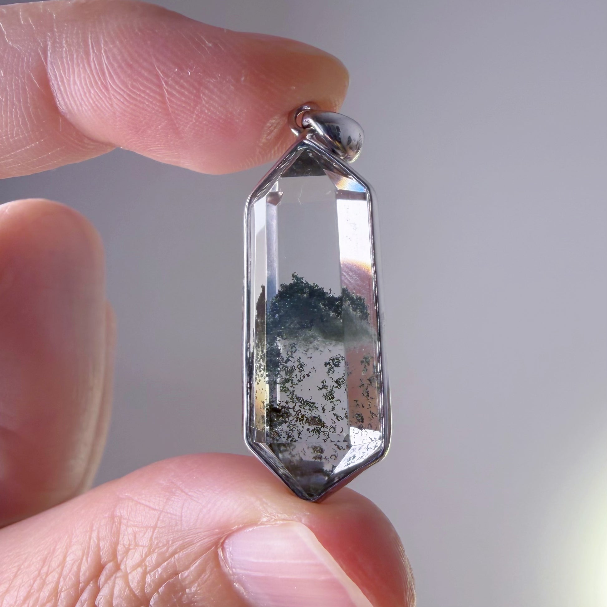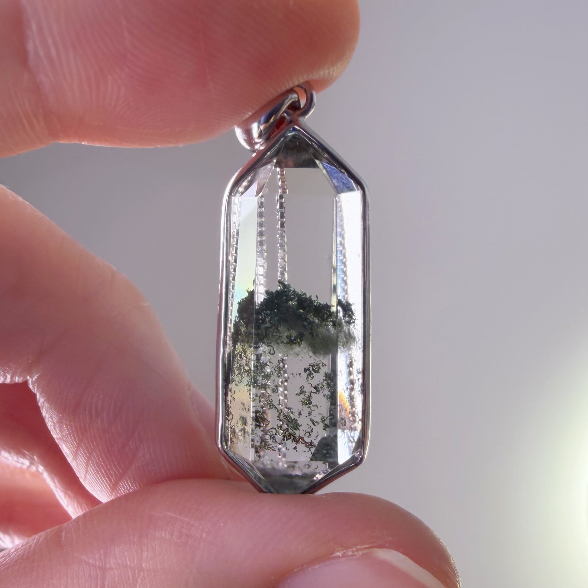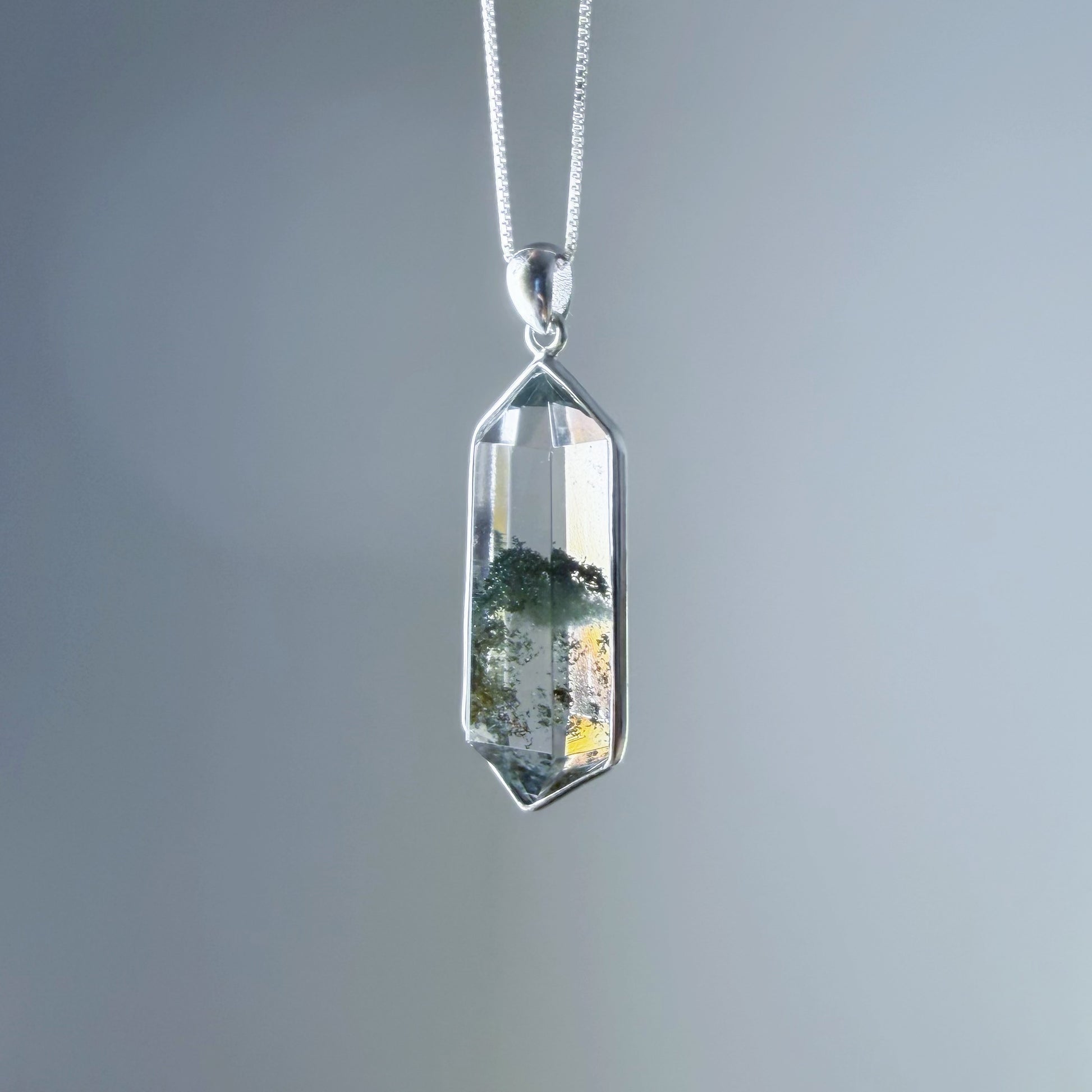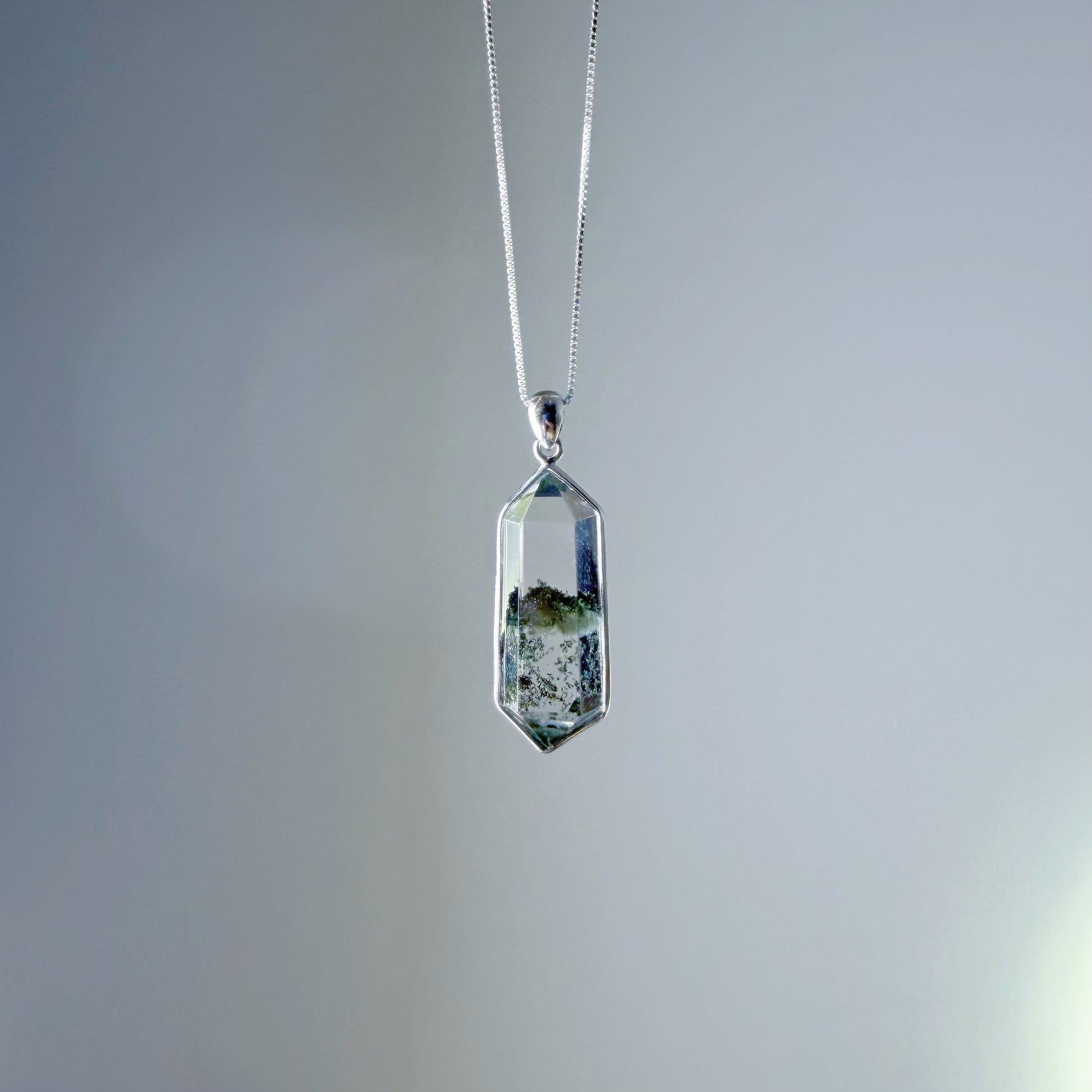 Crystal - natural Phantom Quartz; Frame - sterling silver; chain - sterling silver (contact for custom chain)