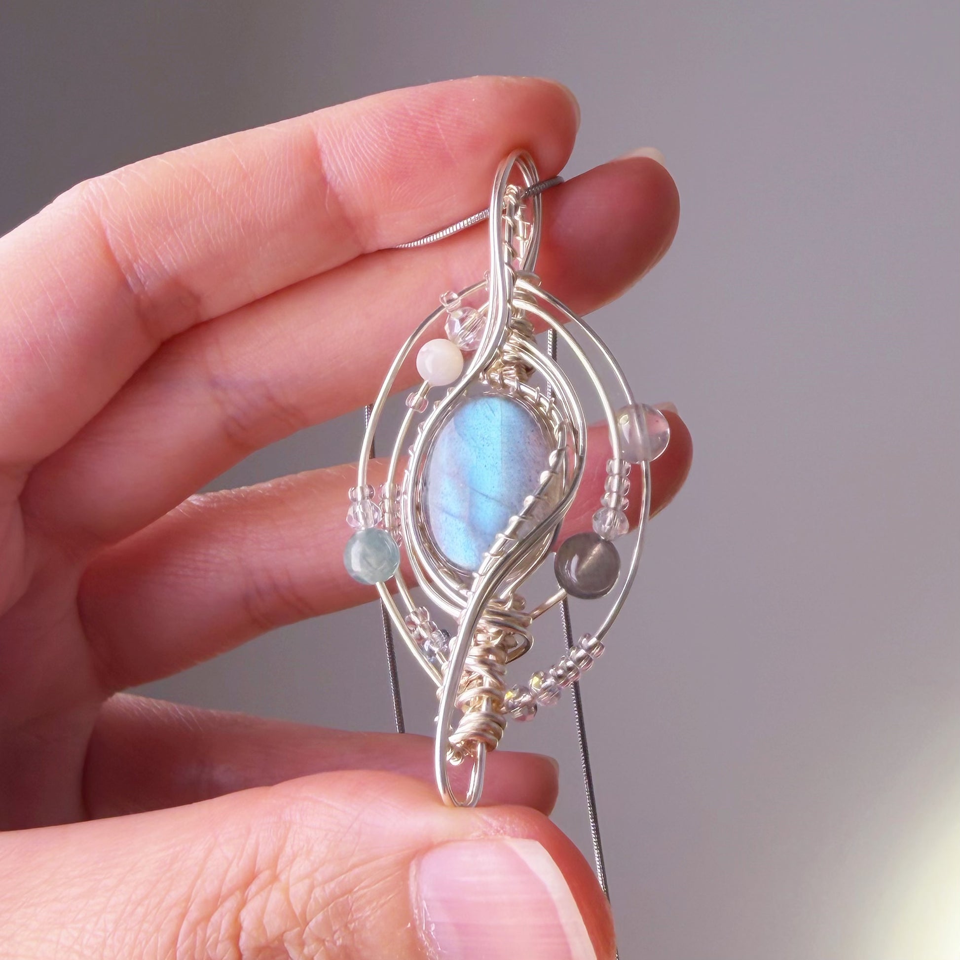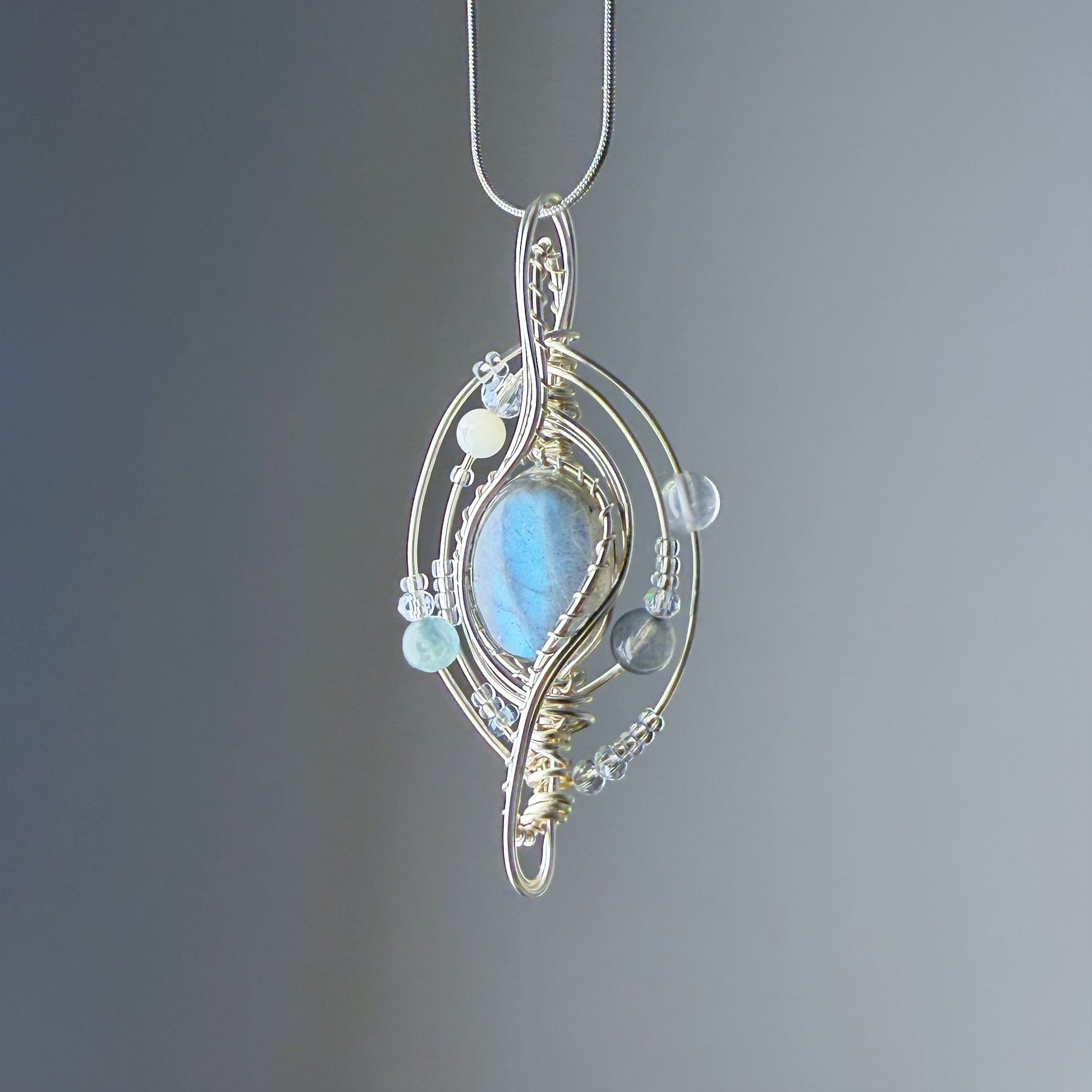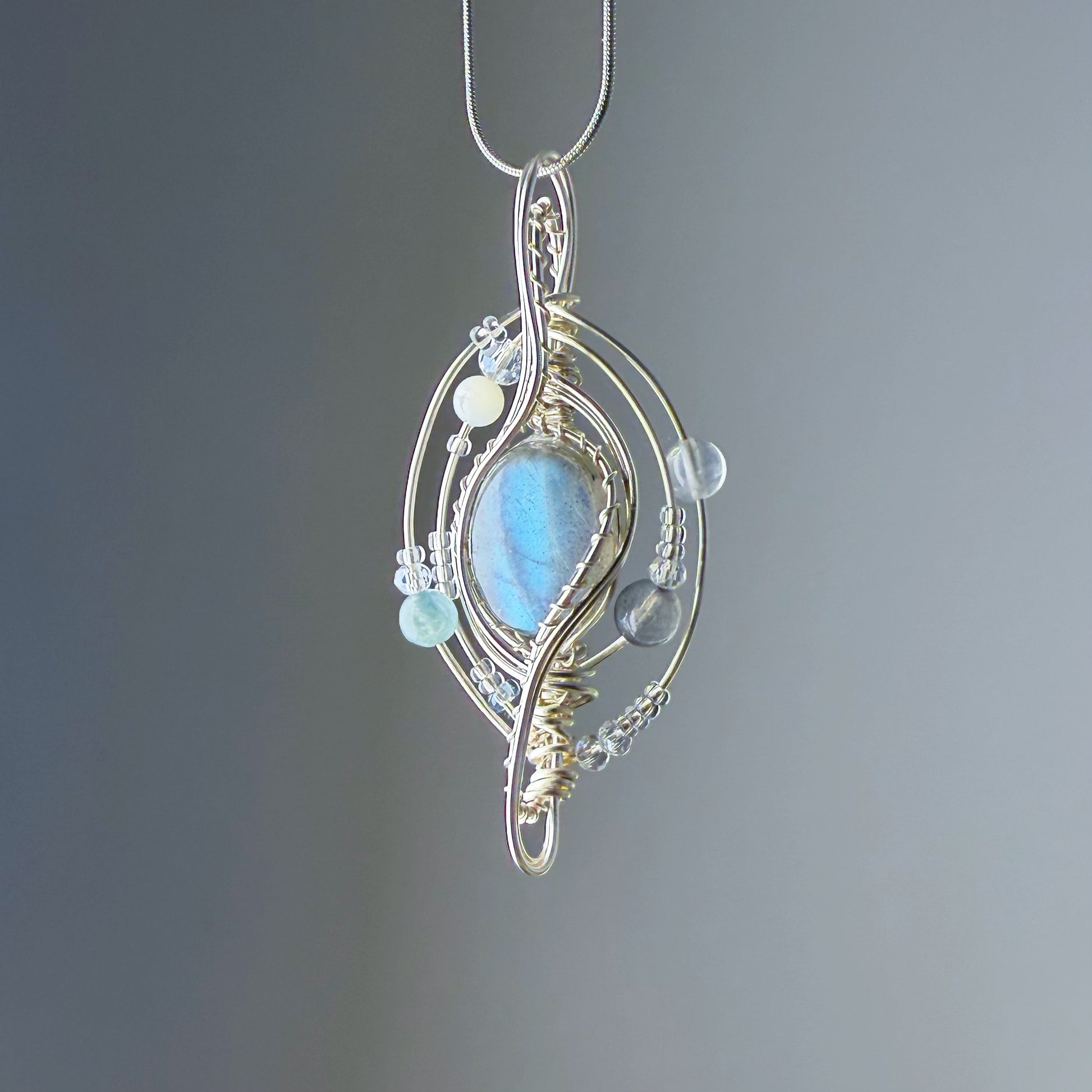 Quartzberry - Natural Labradorite Crystal Solar System Planet Shape Wire Wrapped Necklace - One-of-a-kind