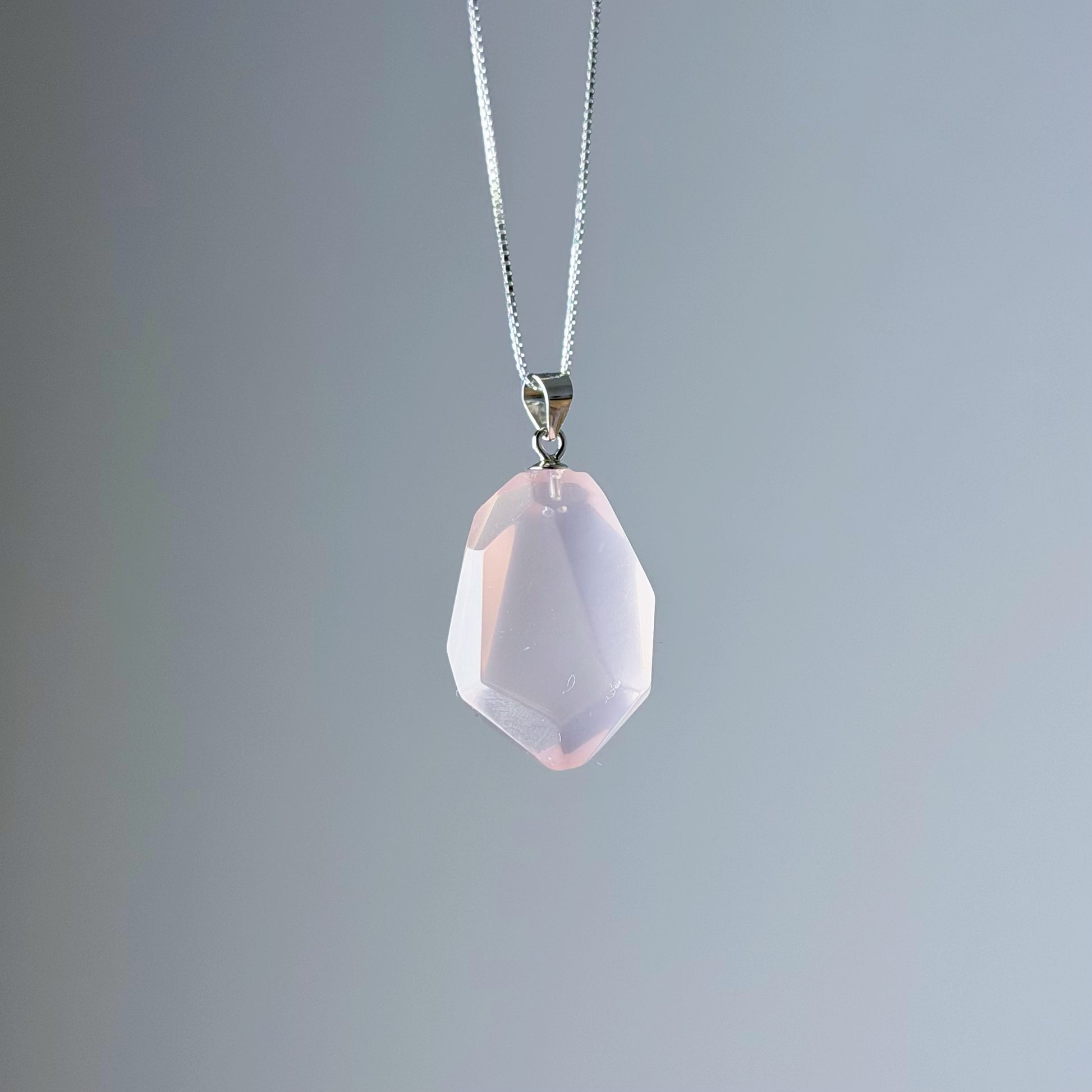 Base and Chain - sterling silver; Stone - natural Rose Quartz;